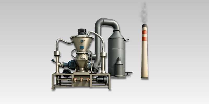 Bulk sorbent (e.g. hydrated lime, sodium bicarbonate, trona or PAC) is delivered and stored in silos. It is fed into a classifier mill equipped with a rotating grinding disc and classifying wheel. Only particles meeting the target fineness (d90 ≈ 20 µm) pass through; coarser particles are recirculated. The resulting high‑surface‑area powder enhances reaction kinetics.
