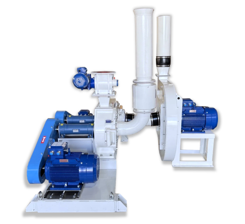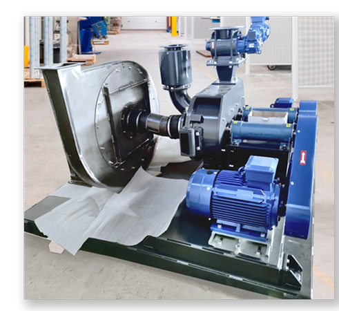 - Milling and dosing skid – combines the classifier mill with a precise dosing system. The skid feeds micronised sorbent into the pneumatic conveying line, maintaining an optimised stoichiometric ratio and ensuring stable injection even under fluctuating loads.